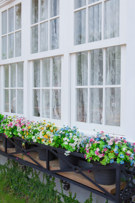 Window boxes are another simple way to liven up your porch. If your green thumb has turned a bit brown, pick some faux plants or flowers instead. Some faux plants look so realistic nobody will know the difference!
