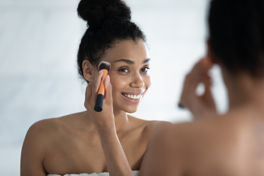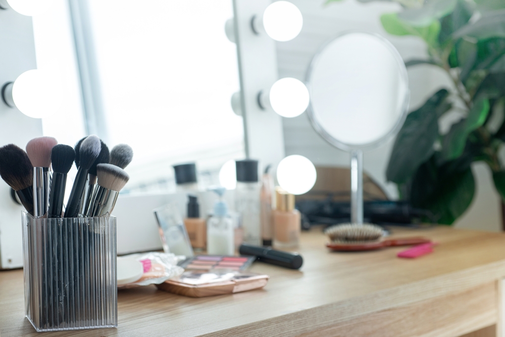 Hopefully, your home was built with windows in the bathroom to help balance the lighting. However, if your bathroom doesn’t have a window and it’s not in your budget to install one, we recommend you get ready for the day by your bedroom or office window. Not only will this improve your makeup accuracy, but it will add dimension to the styling of your bedroom.